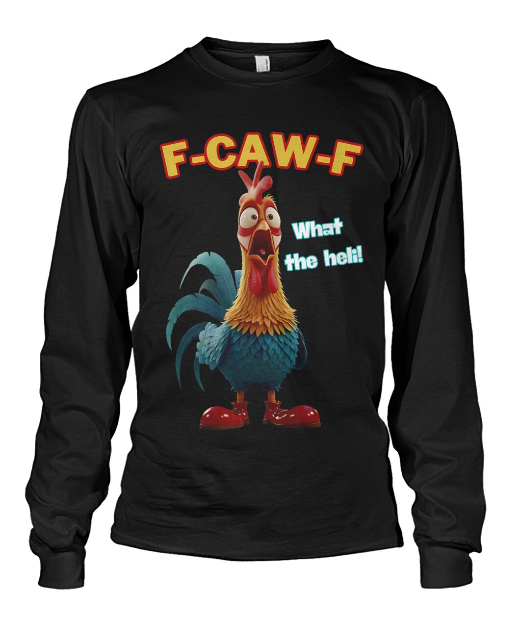 The Chicken F-CAW-F What The Heli Shirt has risen in popularity thanks to its witty and surreal take on fashion. It blends aspects of internet meme culture with a visually appealing design, resulting in a piece that connects with a diverse audience. This shirt is more than a simple joke—it is a cultural declaration that champions individuality, humor, and audacity.