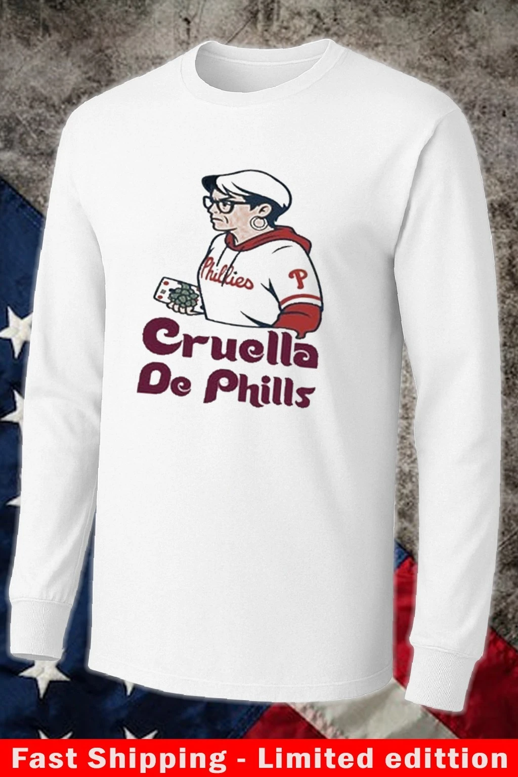 For themed events, consider pairing the shirt with accessories that evoke the Cruella De Vil vibe—perhaps a faux fur coat, bold makeup, or dramatic earrings. Combining these elements with Phillies-specific colors creates a hybrid look that draws attention and celebrates both your favorite team and pop culture references.